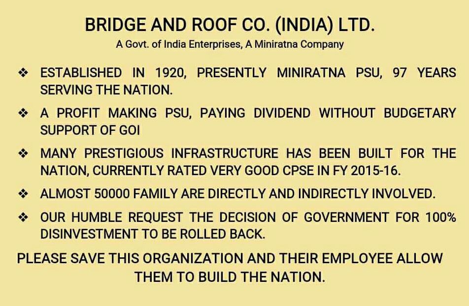 View Bridge & Roof Co. (India) Ltd. (A Govt. Of India Enterprise) US. Find out what works well at bridge & roof co. ब्रिज एण्ड रूफ कम्पनी (इण्डिया) लिमिटेड bridge and roof co.